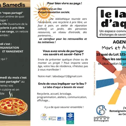 Le labo d'aqui c'est divers ateliers dans un espace convivial autogéré d'échanges de savoirs et savoir-faire. Lieu d'expérimentation sociale avec buvette, bibliothèque, recyclerie, four à pain, atelier réparation, jardin....carrefour pour retrouvailles et initiatives
