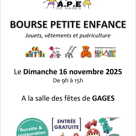 Vente de jouets, vêtements et puériculture… Buvette et restauration sur place