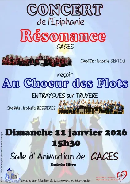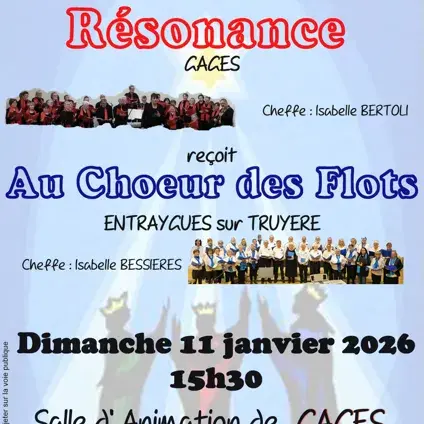 L’année 2026 va commencer en beauté à Gages grâce à un concert exceptionnel qui réunira deux formations musicales de talent : l’ensemble vocal « Résonance » de Gages et la chorale « Au chœur des flots » d’Entraygues .