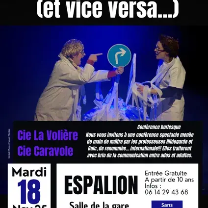 Le professeur Guic et le Professeur Hildegarde sont deux spécialistes mondiales de la communication intergénérationnelle. Pendant cette conférence haute en couleurs, elles vont nous faire un panorama tendre et documenté sur la communication entre les adolescents et les adultes, en l’occurrence leurs parents.