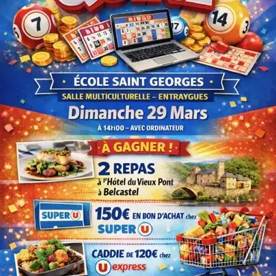 Gros lots à gagner (2 repas à l'hôtel du vieux pont à Belcastel 150€ en bon d'achat à Super U caddie de 120€ chez U-Express et de nombreux autres lots
