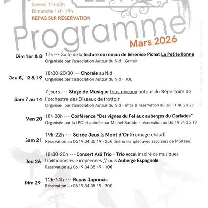 REPAS JAPONAIS : 12h/14h, sur réservation au 06 19 34 35 19. 30€