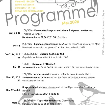 Tiers-lieu coopératif d'intérêt collectif ouvert le vendredi 18h/22h. Samedi 11h/22h et dimanche 11h/19h, repas sur réservation et lors de diverses animations